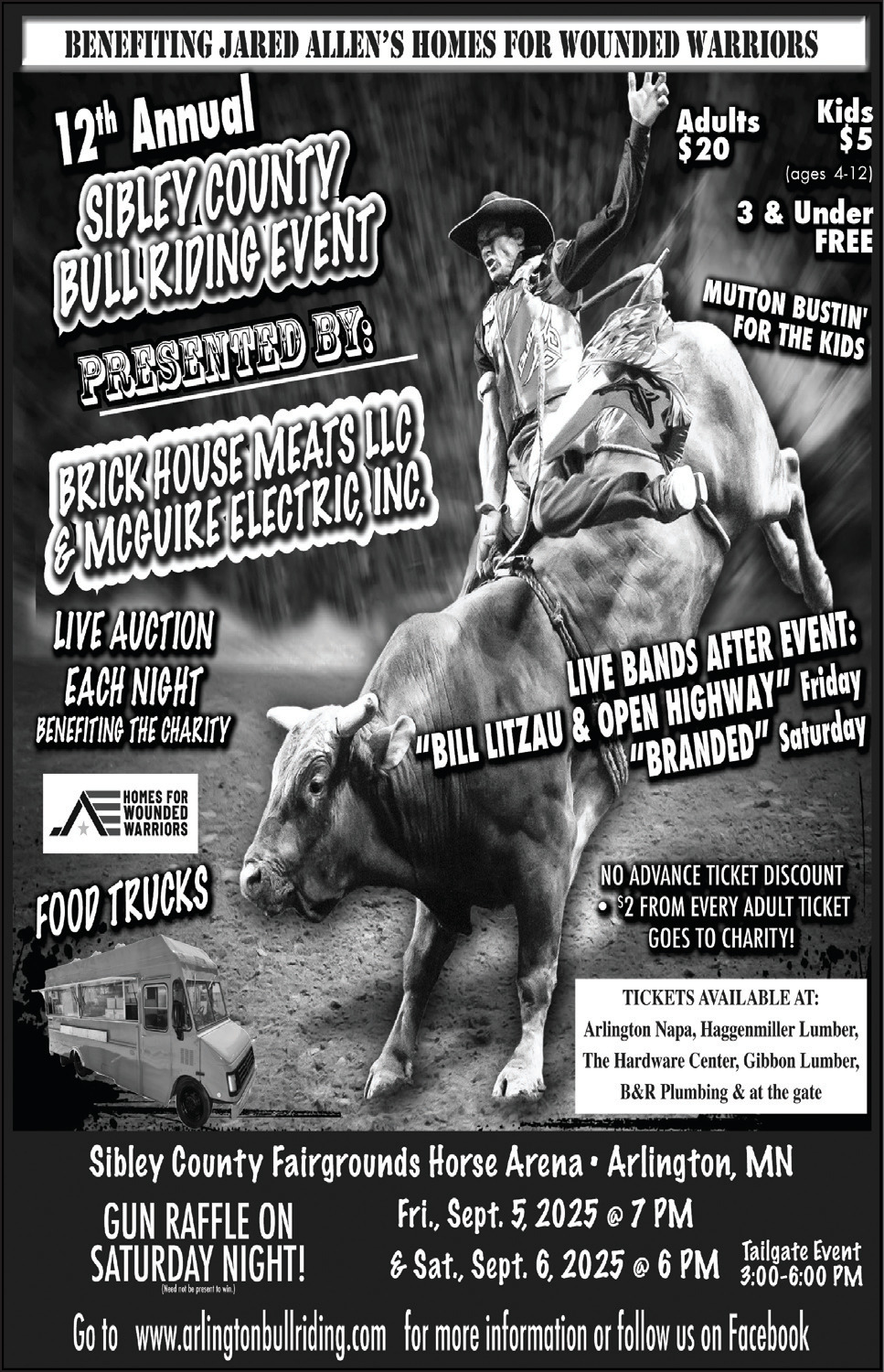 Aug 28, 2025. 12th Annual Sibley County Bull Riding Event Events Ads from St Peter Herald
