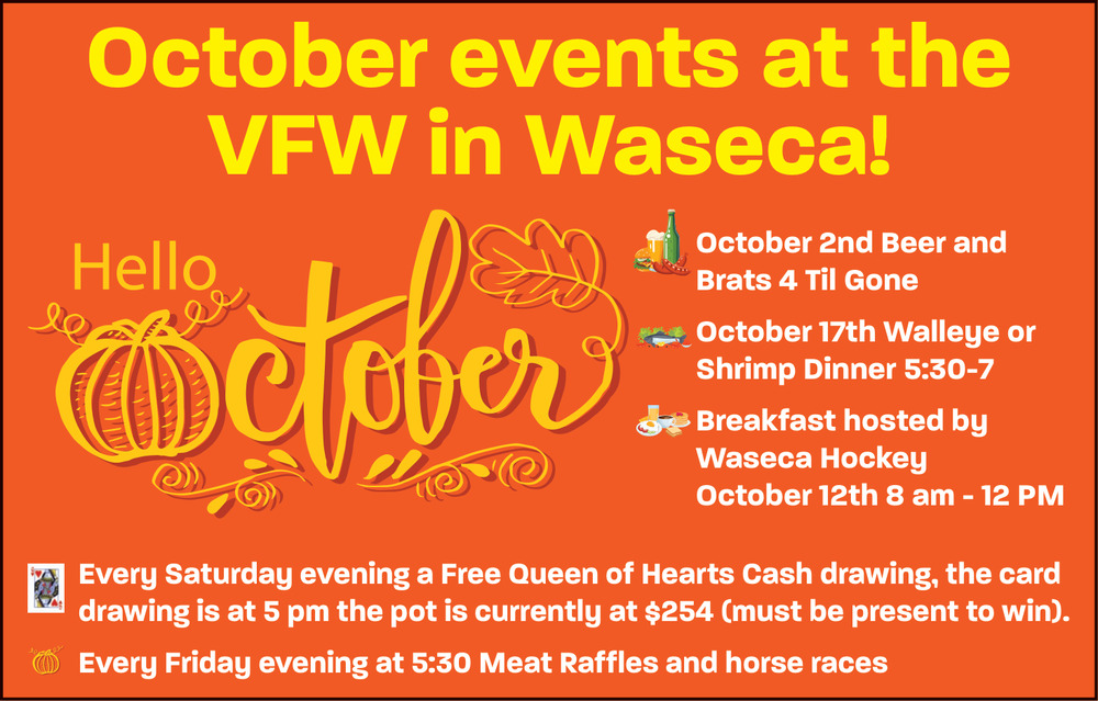 Oct 01, 2025. VFW 1642 - Waseca Festivals & Events Ads from Waseca County News