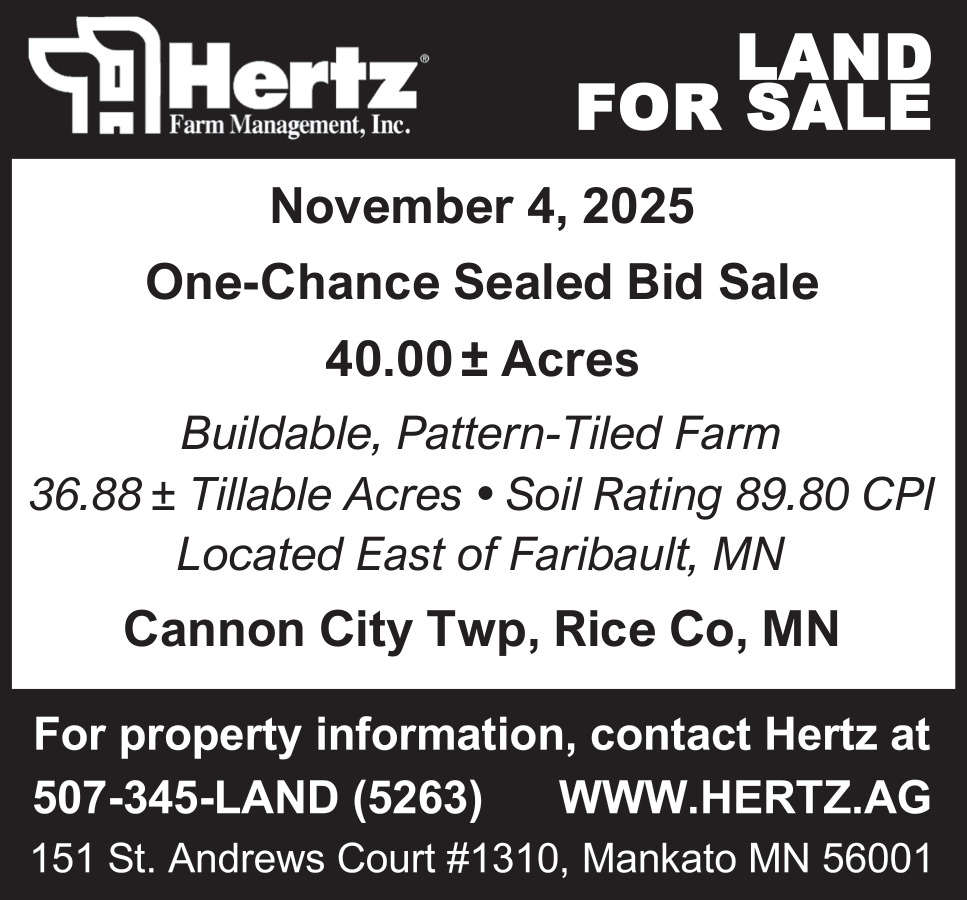 Oct 04, 2025. Hertz Farm Management, Inc Accounting Ads from Southern Minn Media