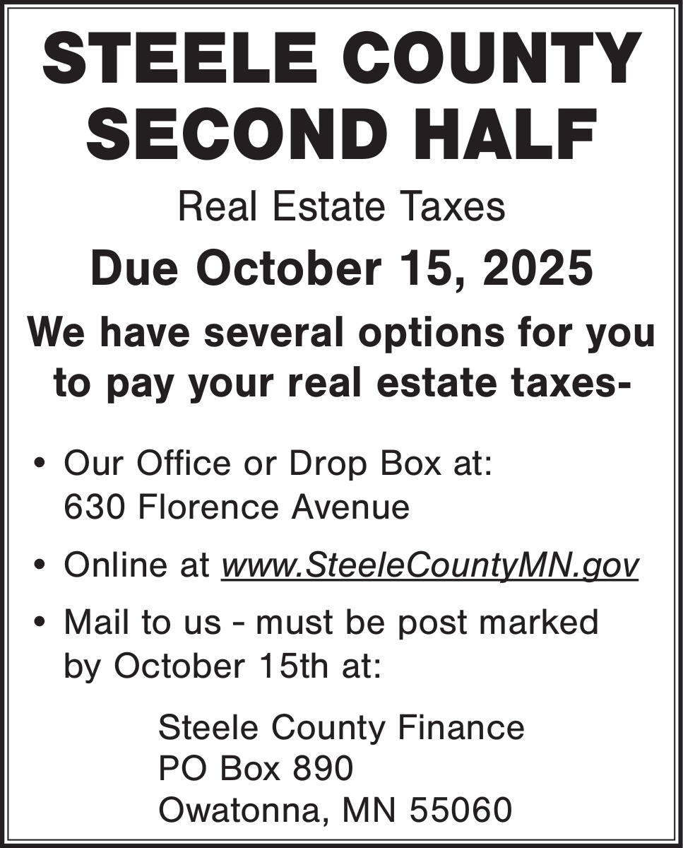 Oct 11, 2025. Steele County Notices Ads from Owatonna Peoples Press