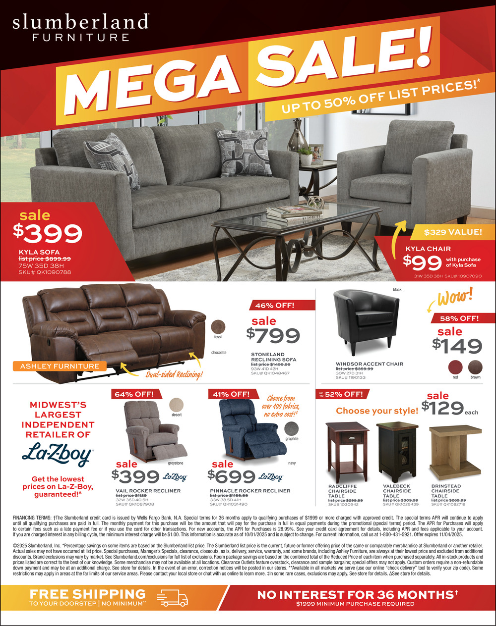 507-444-92002375 NW 46th StOwatonna, MN 55060(Slumberland Furniture - Owatonna)