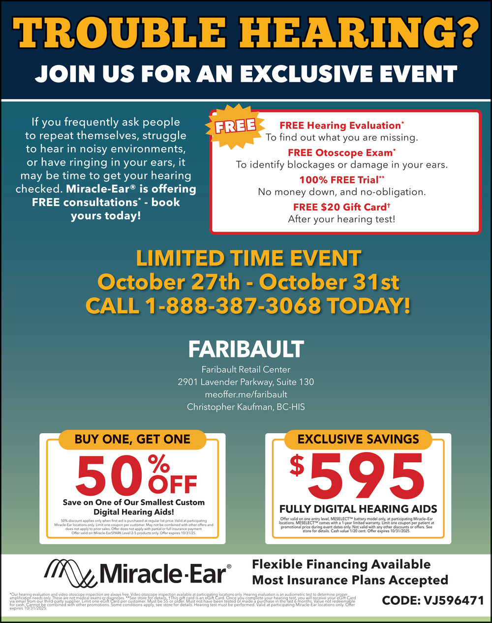 Oct 15, 2025. Miracle Ear - Faribault Health & Wellness Ads from Faribault Daily News