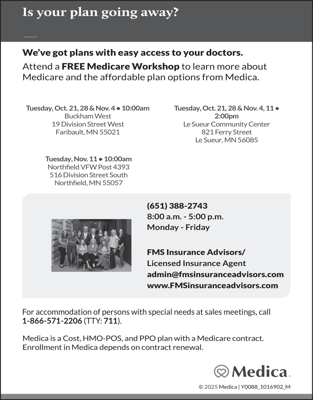 Oct 14, 2025. Medica Free Medicare Workshop (October 21,28 - November 11, 2025) Events Ads from Northfield News