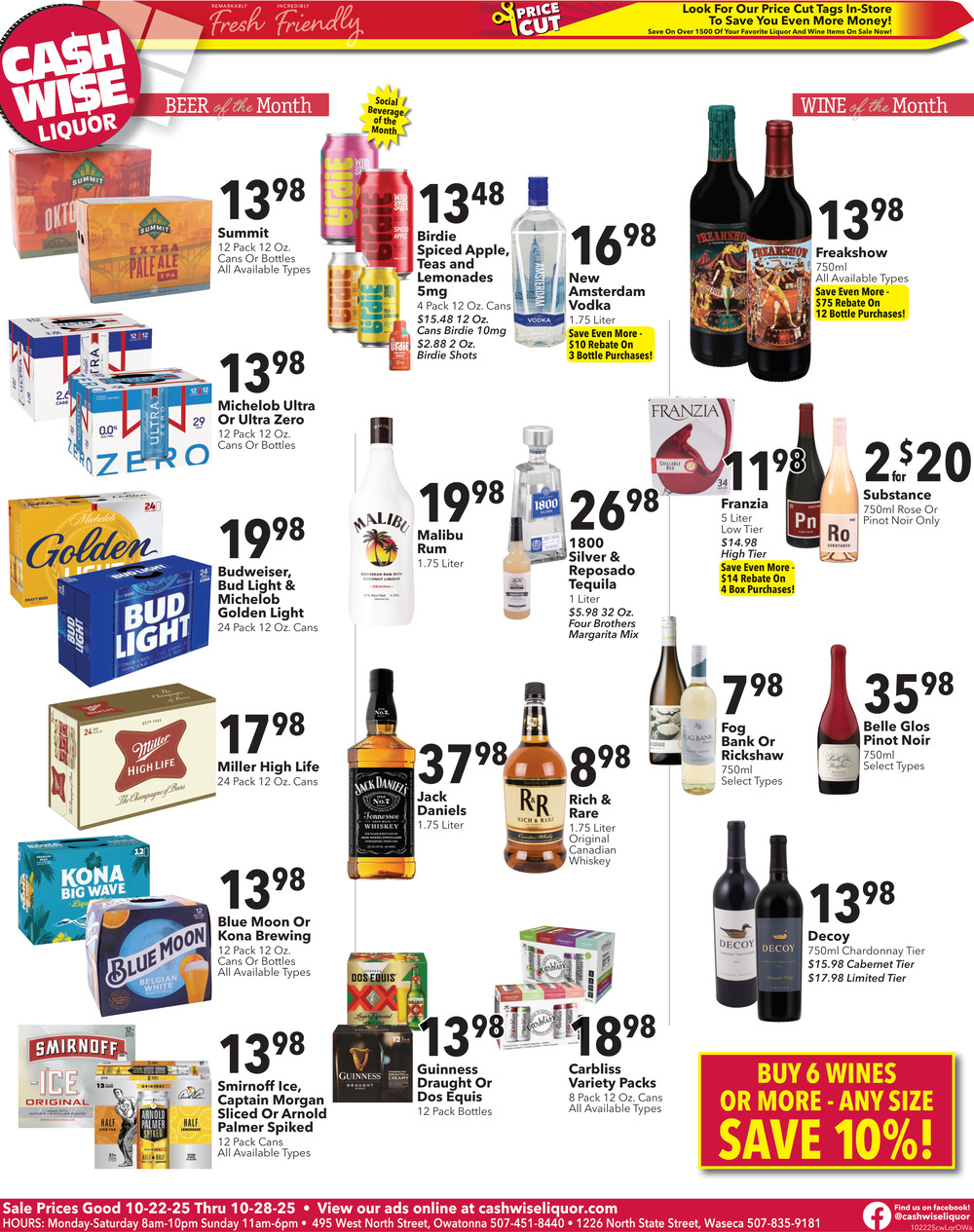 Oct 22, 2025. Cash Wise Liquor - Owatonna, Waseca Liquor Ads from Waseca County News
