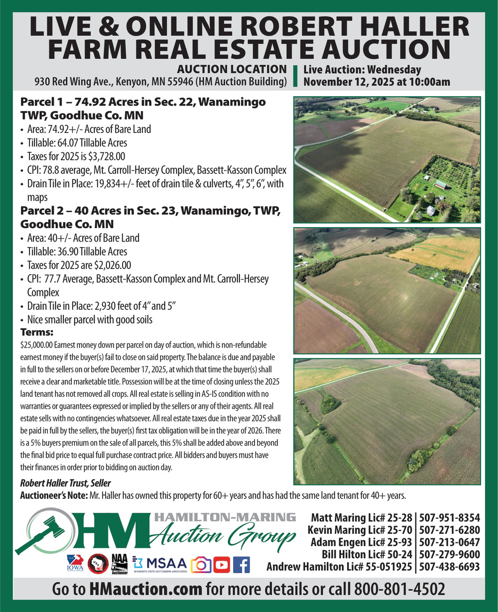 Oct 22, 2025. Hamilton-Maring Auction Group Auctions Ads from The Kenyon Leader