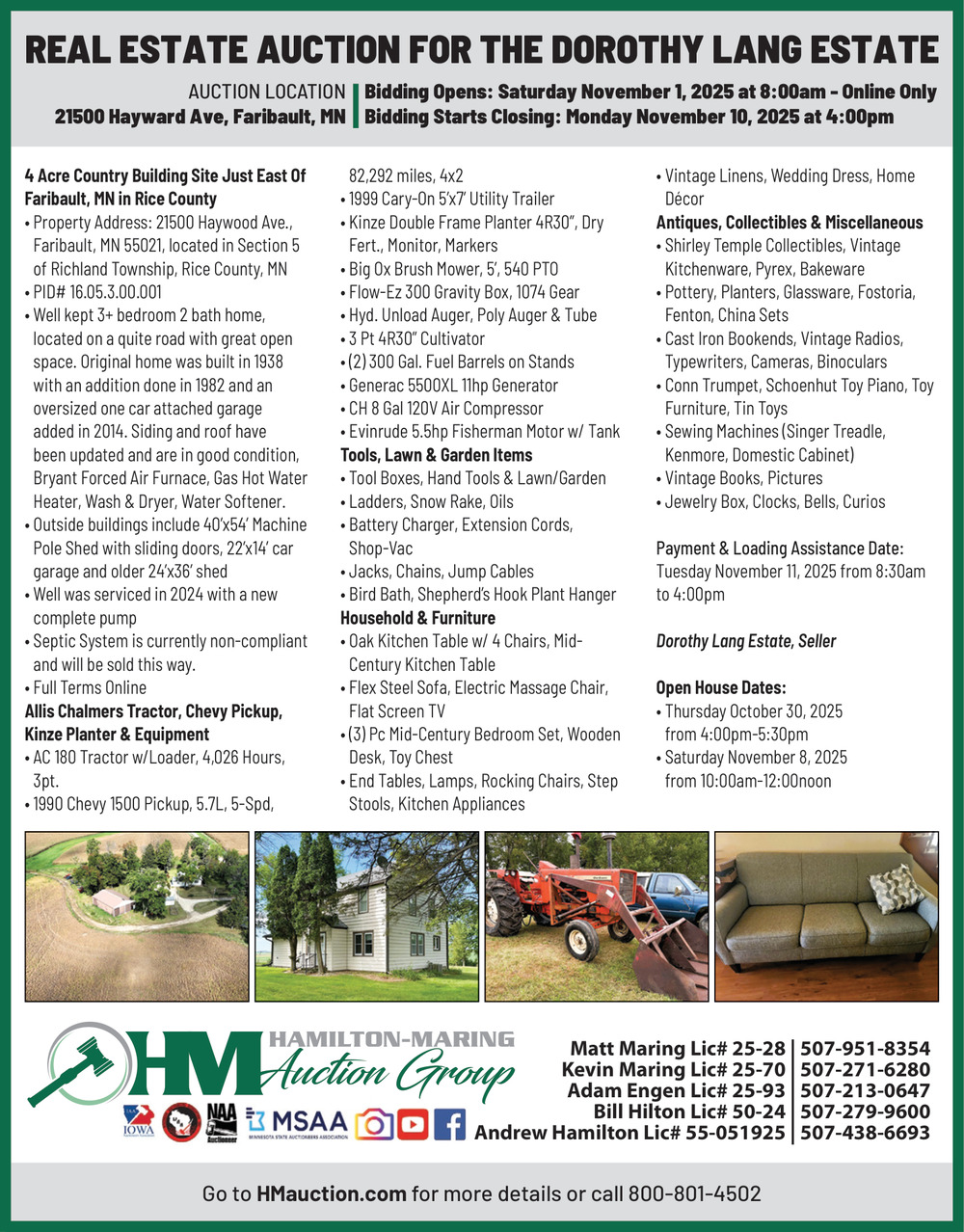 Oct 25, 2025. Hamilton-Maring Auction Group Auctions Ads from Southern Minn Media
