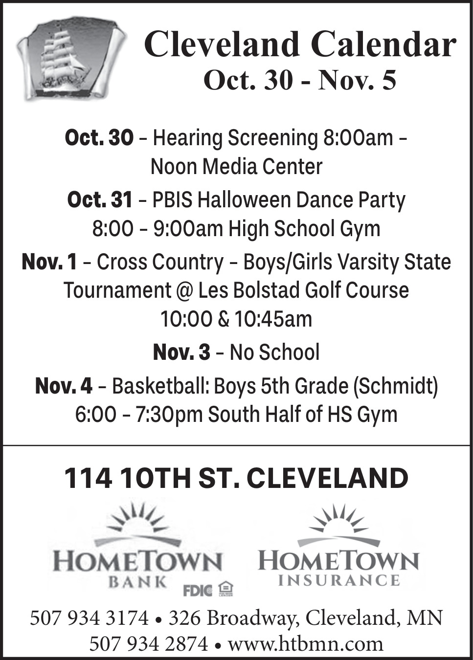 Oct 30, 2025. Hometown Bank - Cleveland Banks Ads from St Peter Herald