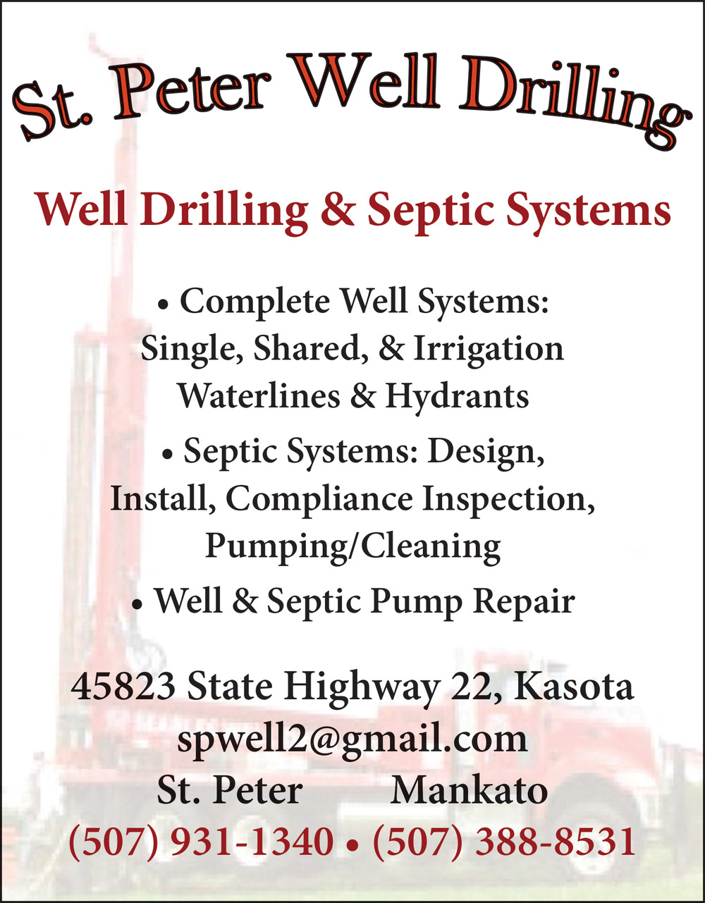 Oct 30, 2025. St. Peter Well Drilling Septic Ads from St Peter Herald