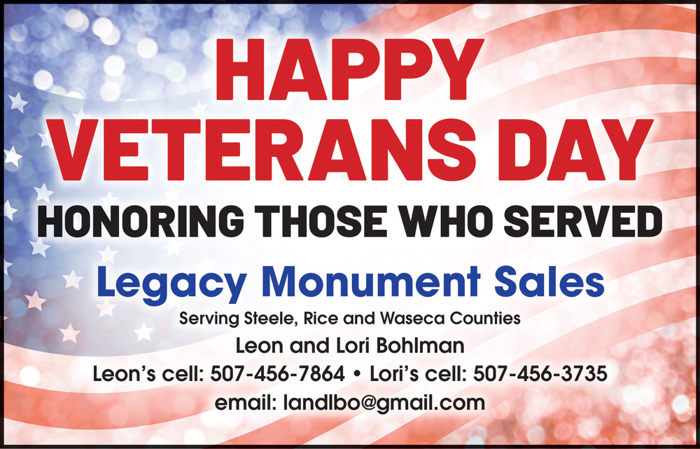 Nov 04, 2025. Legacy Monument Sales Monuments Ads from Owatonna Peoples Press