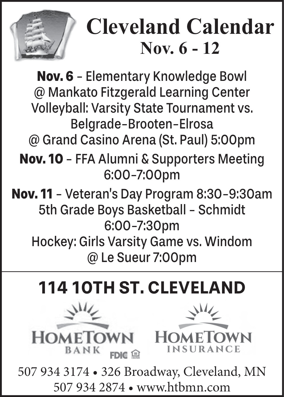 Nov 06, 2025. Hometown Bank - Cleveland Banks Ads from St Peter Herald
