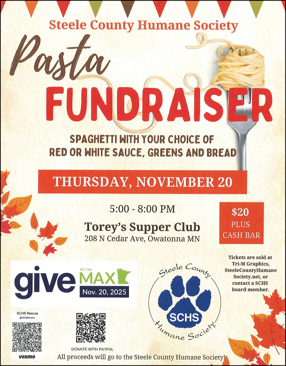 Steele County Humane Society - Pasta Fundraiser