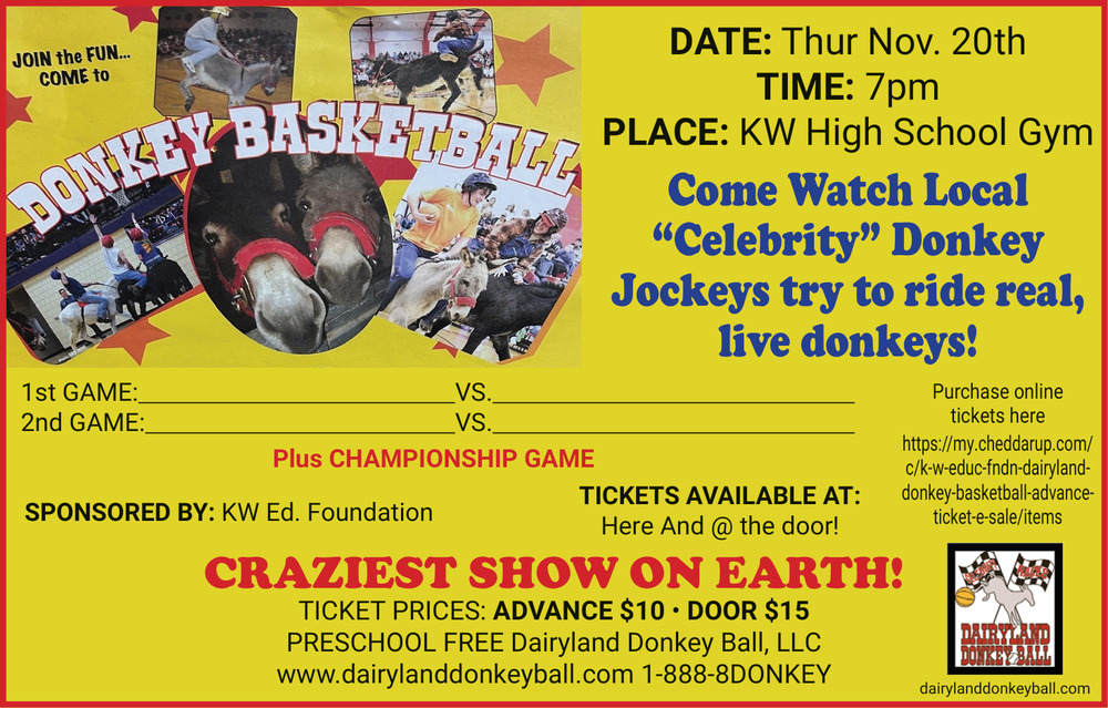 Nov 12, 2025. Dairyland Donkey Ball (November 20, 2025) Events Ads from The Kenyon Leader