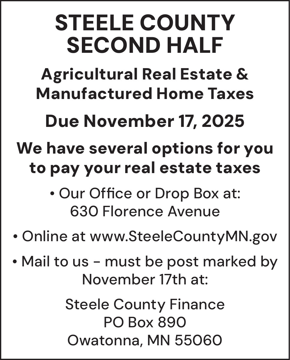 Nov 13, 2025. Steele County Notices Ads from Owatonna Peoples Press