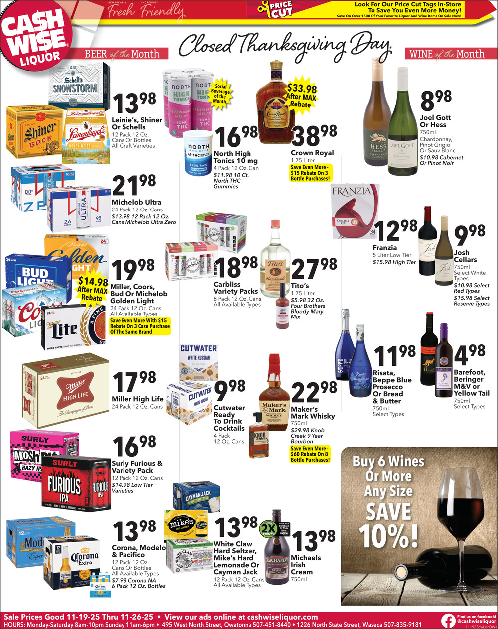 Nov 19, 2025. Cash Wise Liquor - Owatonna, Waseca Liquor Ads from Waseca County News