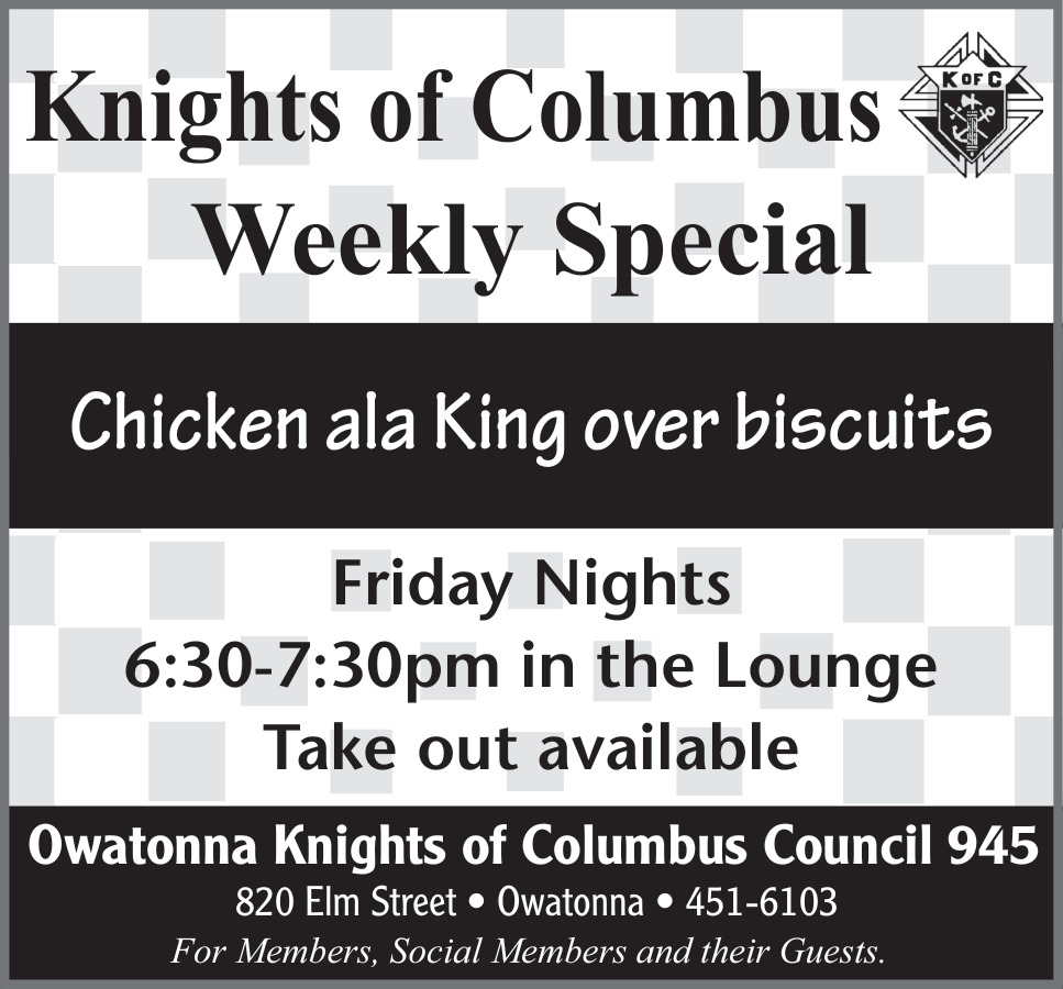 Nov 19, 2025. Owatonna Knights of Columbus Council 945 Events Ads from Owatonna Peoples Press