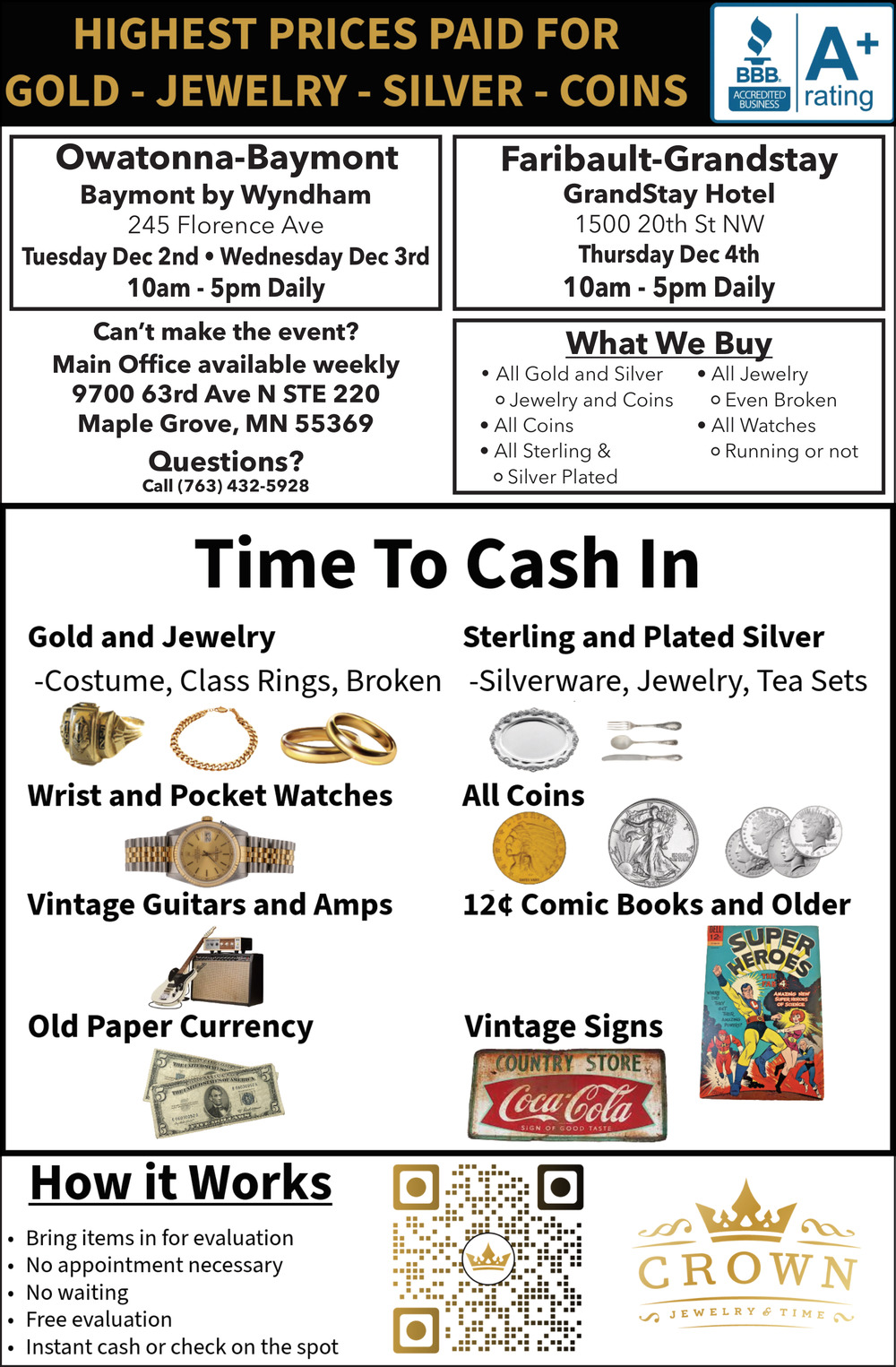 Nov 25, 2025. Crown Jewelry & Time Jewelry Ads from Southern Minn Media