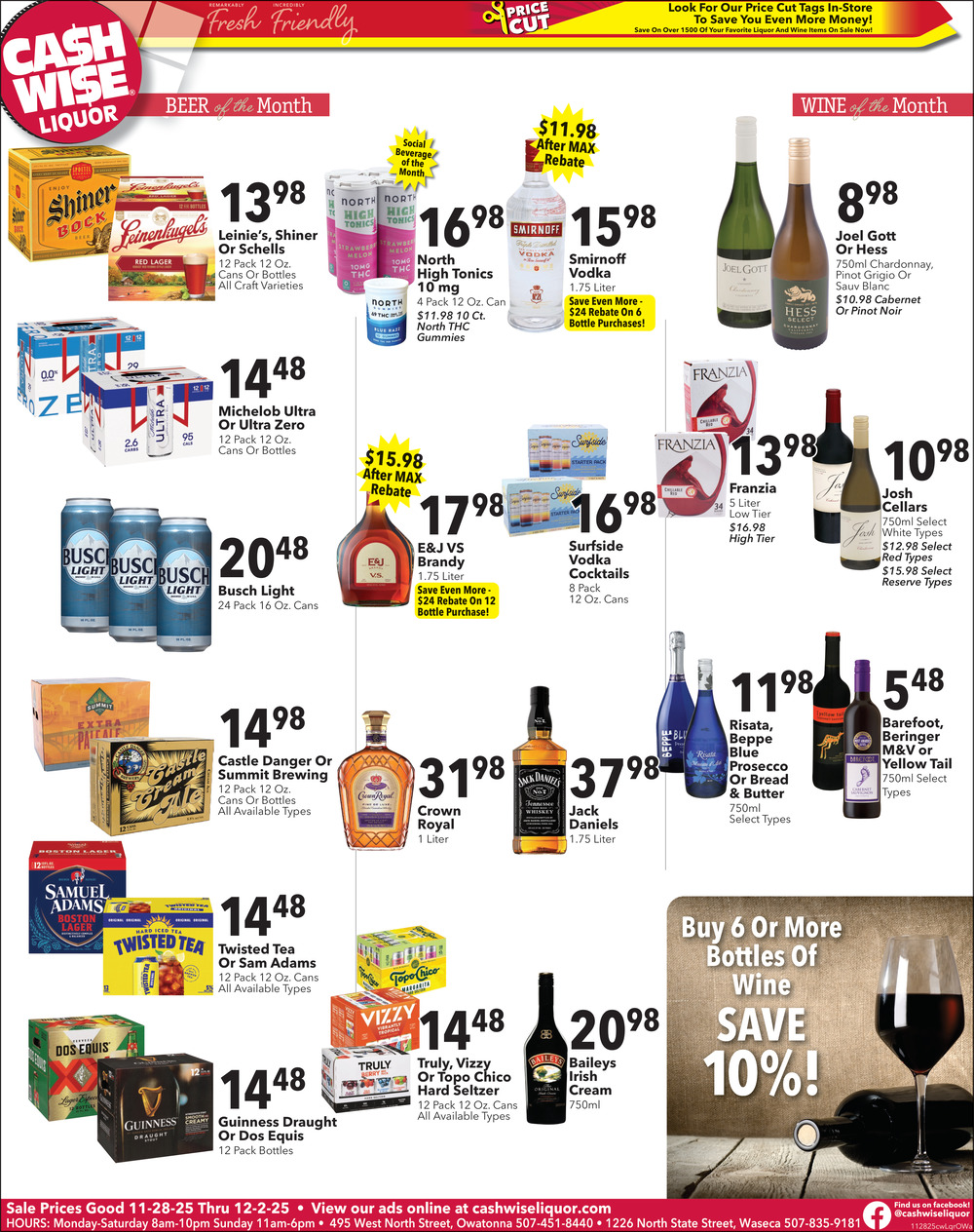 Nov 26, 2025. Cash Wise Liquor - Owatonna, Waseca Liquor Ads from Waseca County News
