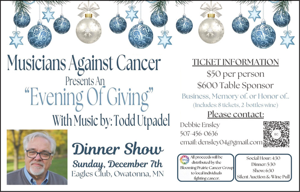 Nov 30, 2025. Evening of Giving (December 7, 2025) Events Ads from Owatonna Peoples Press