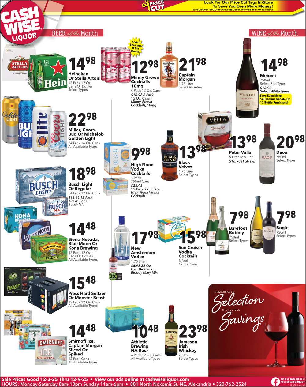 Dec 03, 2025. Cash Wise Liquor - Owatonna, Waseca Liquor Ads from Waseca County News
