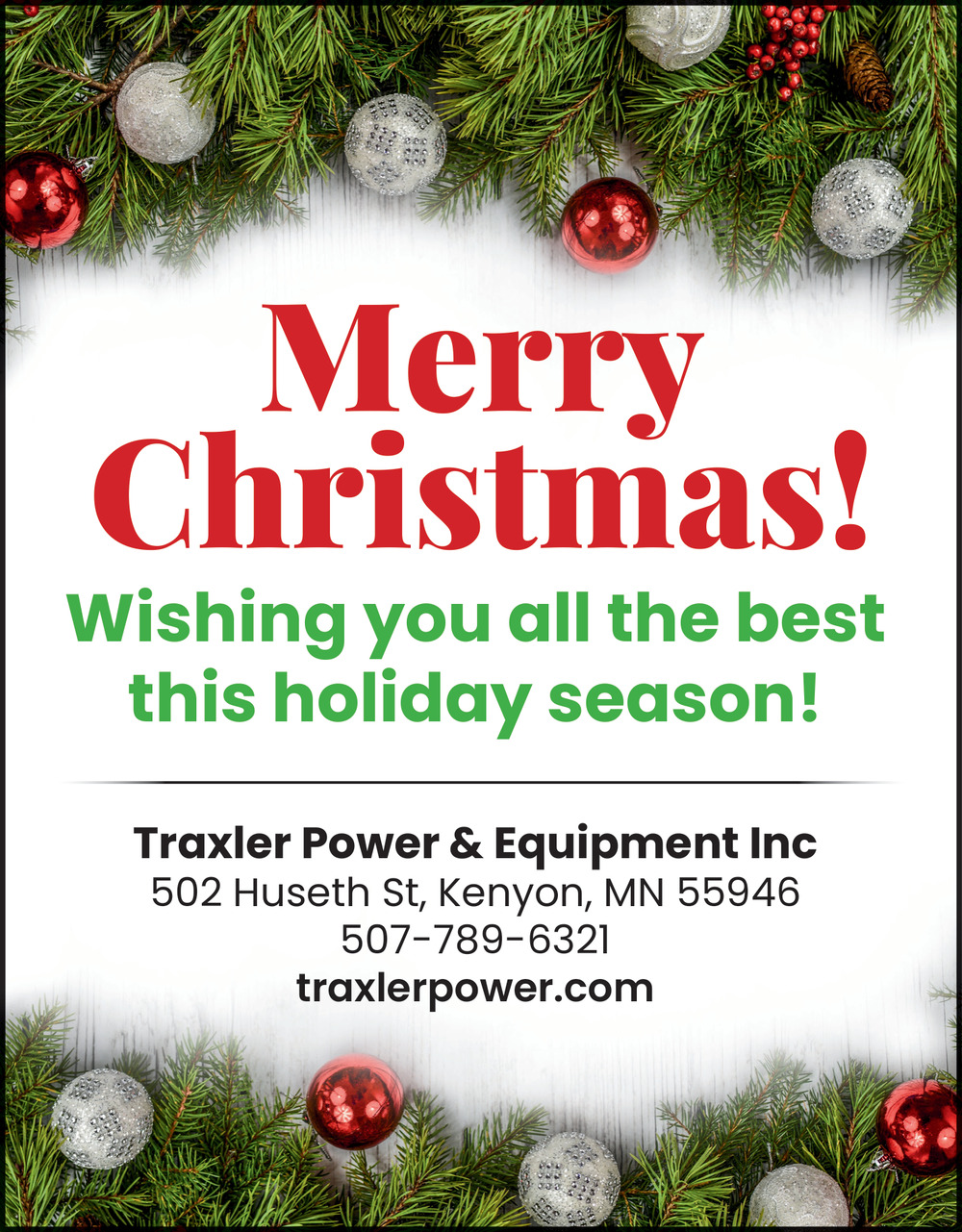 Ads for Traxler Power & Equipment in Kenyon, MN