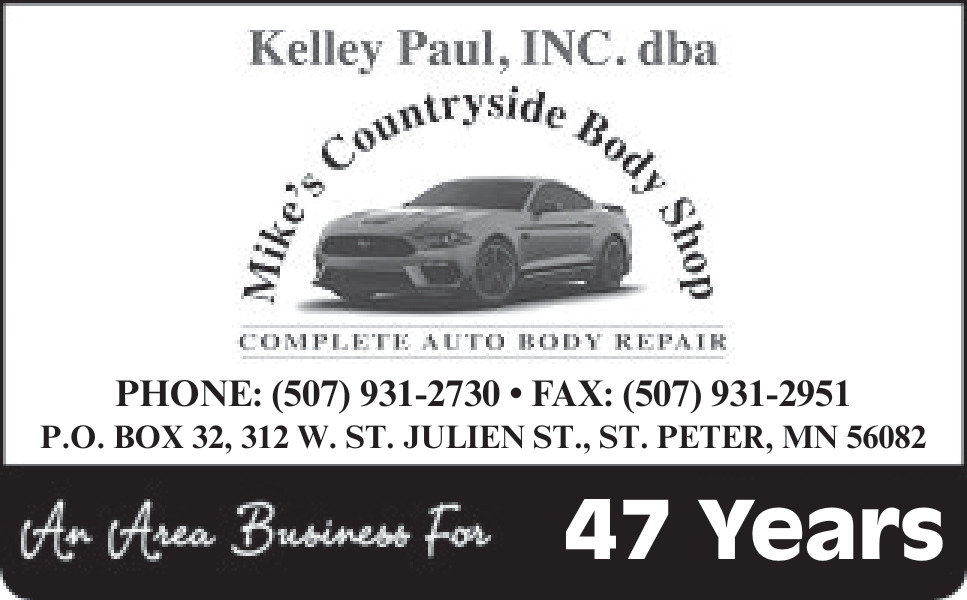 Dec 25, 2025. Mike's Countryside Body Shop Auto Repair Ads from St Peter Herald