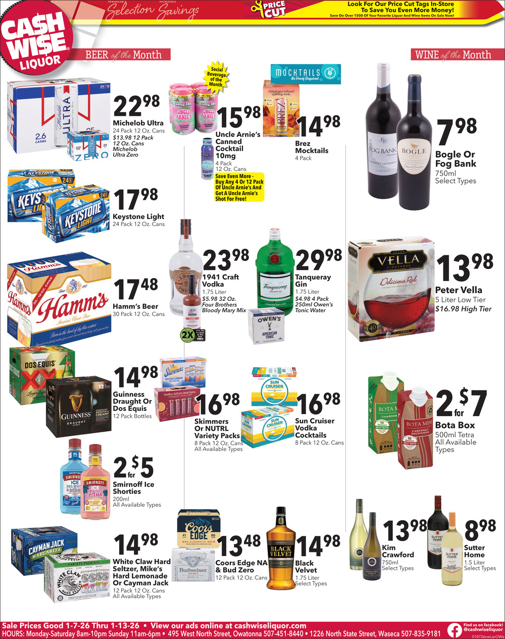 Jan 06, 2026. Cash Wise Liquor - Owatonna, Waseca Liquor Ads from Owatonna Peoples Press