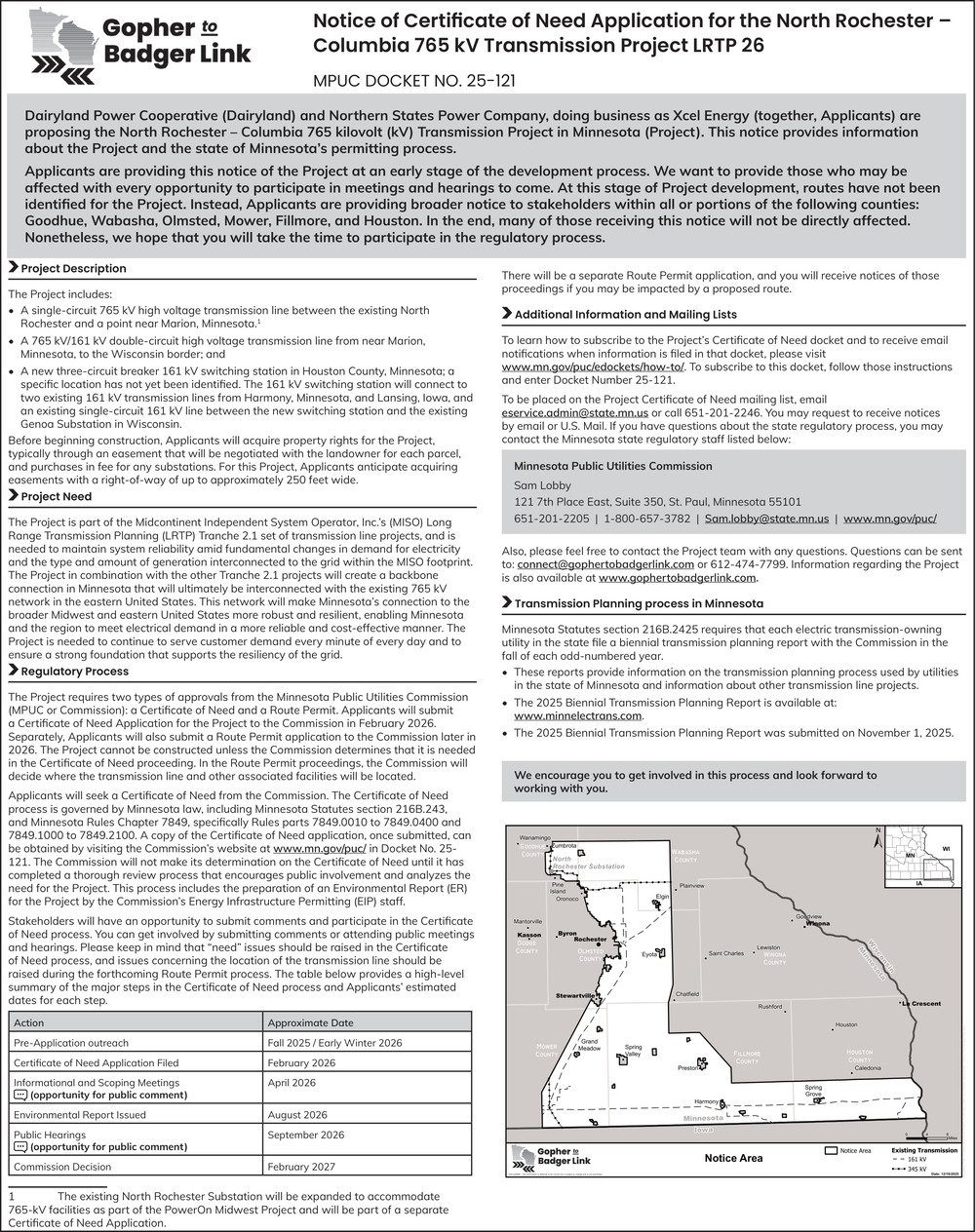 Notice of Certificate of Need Application