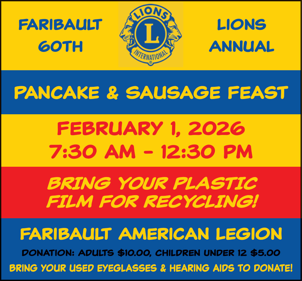 Jan 28, 2026. Faribault 60th Lions Annual Pancake & Sausage Feast (February 2, 2025) Events Ads from Faribault Daily News