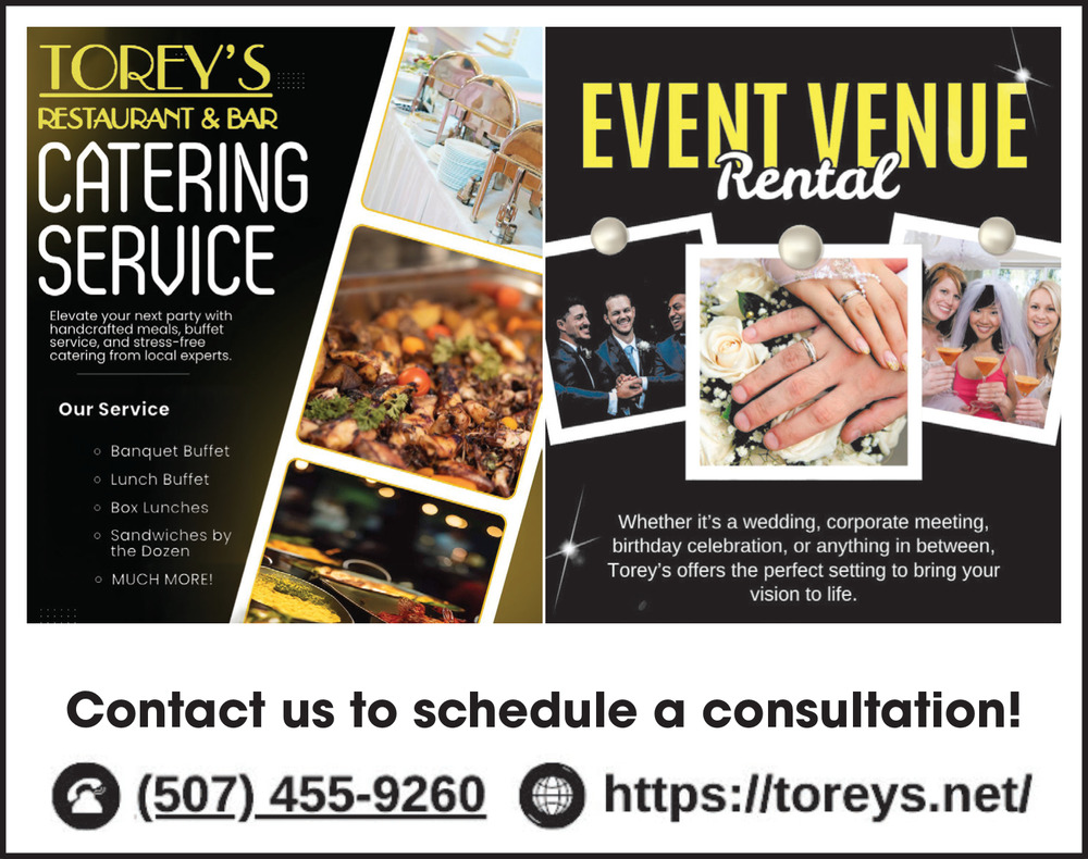 Feb 25, 2026. Torey's Restaurant & Bar Restaurants Ads from Southern Minn Media