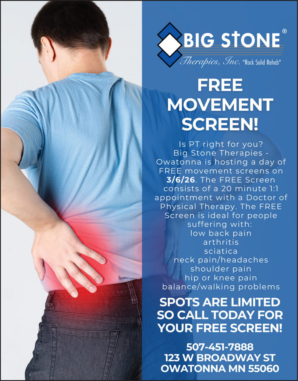 507-451-7888123 W Broadway StOwatonna, MN 55060(Big Stone Therapies)