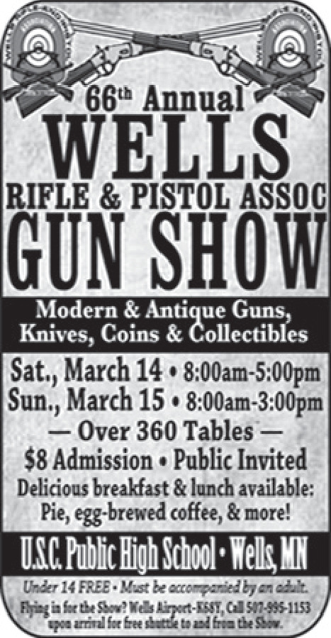 Mar 04, 2026. 66th Annual Wells Rifle & Pistol Association Gun Show Events Ads from Southern Minn Media