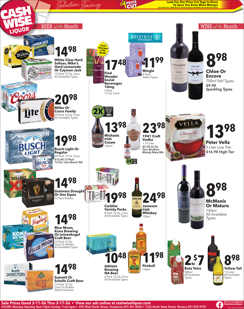 Mar 11, 2026. Cash Wise Liquor - Owatonna, Waseca Liquor Ads from Waseca County News