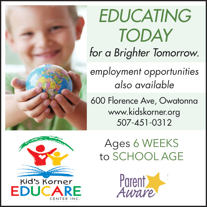 Mar 14, 2026. Kid's Korner Educare Center Inc Child Care Ads from Owatonna Peoples Press