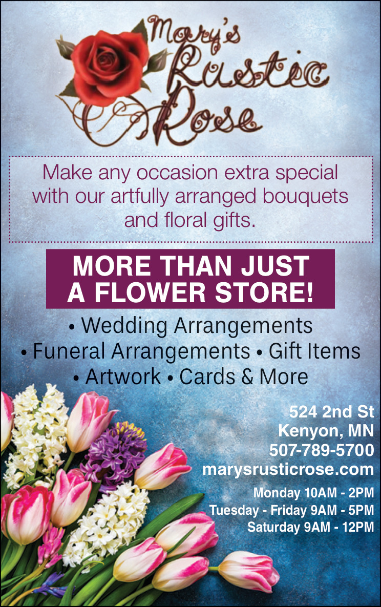 Mar 25, 2026. Mary's Rustic Rose Gifts Ads from The Kenyon Leader
