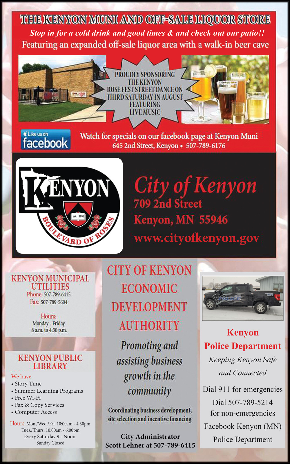 Mar 25, 2026. City Of Kenyon Misc Ads from The Kenyon Leader