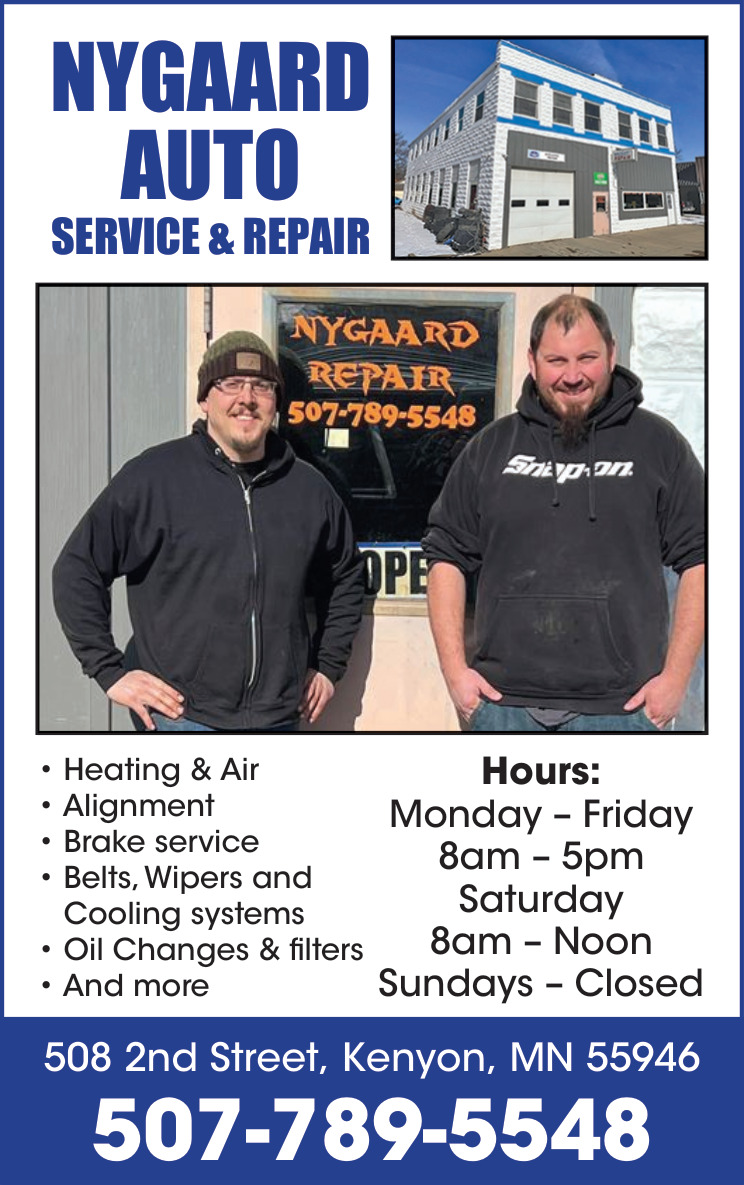 Mar 25, 2026. Nygaard Auto Services & Repair Auto Repair Ads from The Kenyon Leader