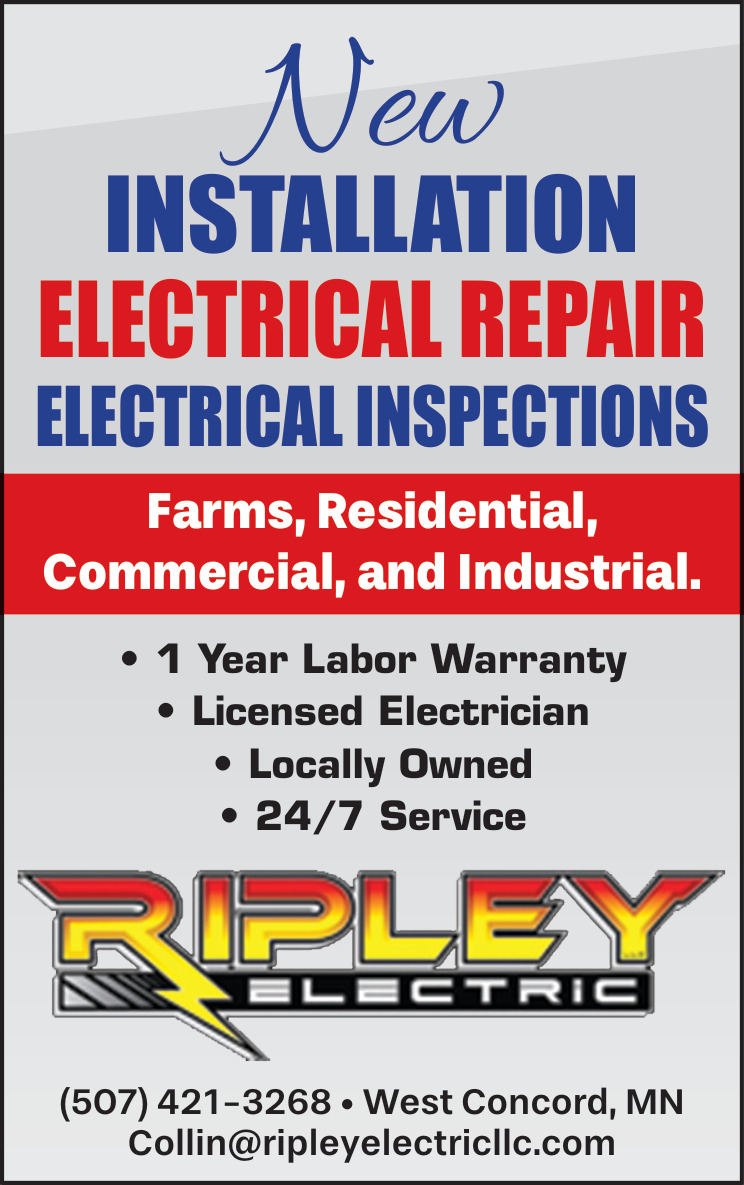 Ads for Ripley Electric in West Concord, MN