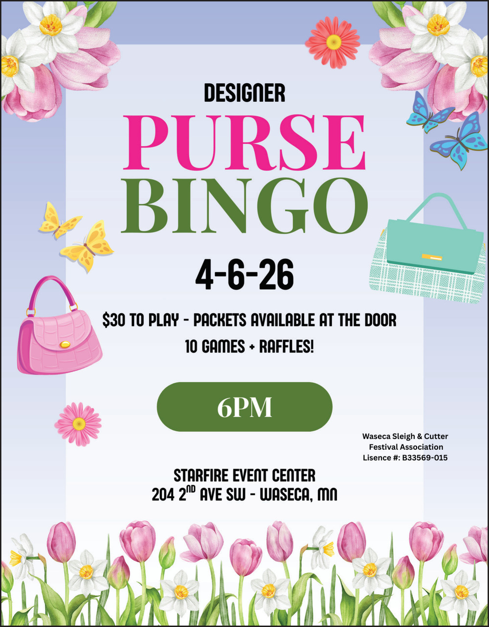 Ads for Designer Purse Bingo (April 6, 2026) in Southern Minn