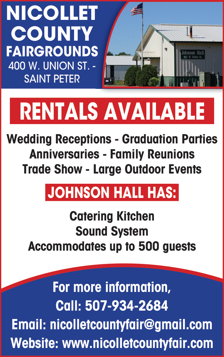 Mar 26, 2026. Nicollet County Fairgrounds Events Ads from St Peter Herald