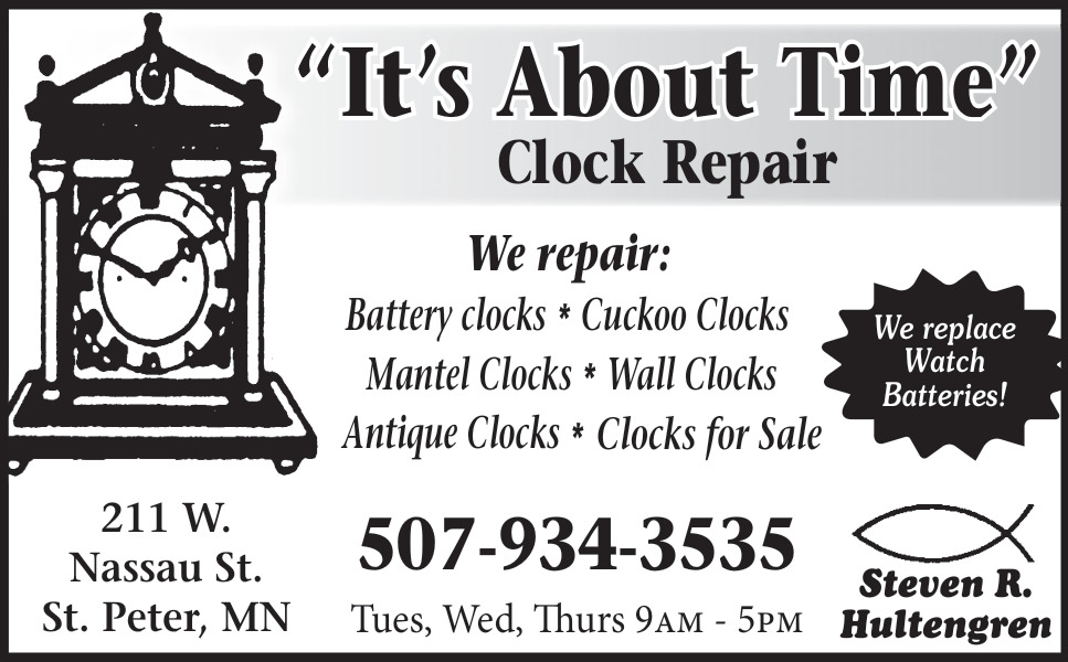 Mar 26, 2026. It's About Time Clock Repair Services Ads from St Peter Herald