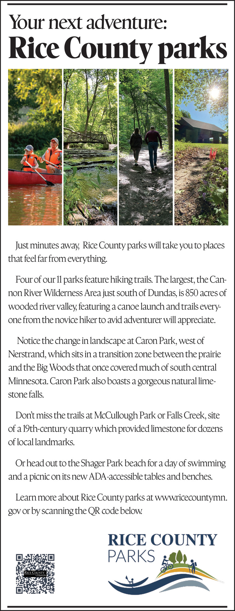 Ads for Rice County Parks in Southern Minn