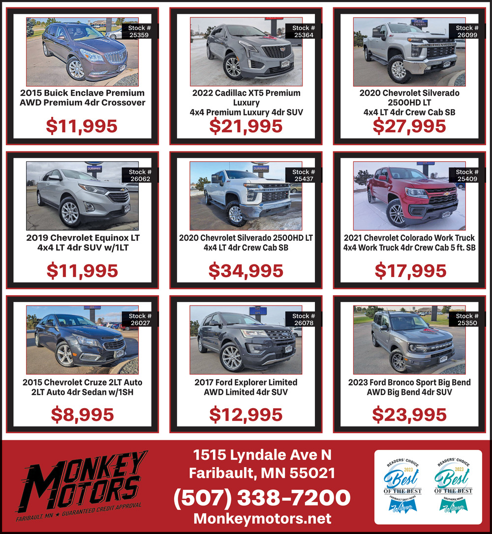 507-338-72001515 Lyndale Ave NFaribault, MN 55021(Monkey Motors)