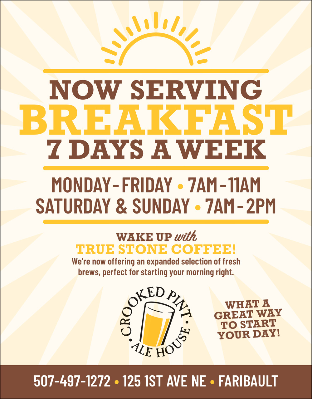 Apr 04, 2026. Crooked Pint Ale House Restaurant Ads from Faribault Daily News
