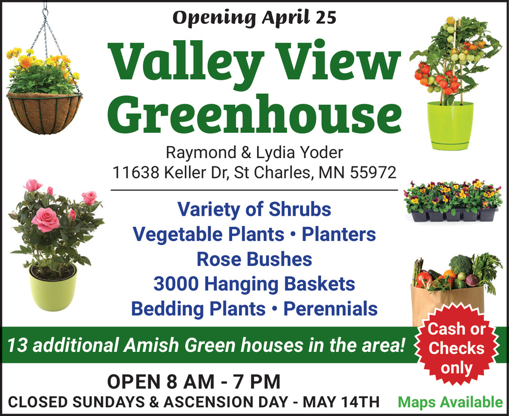 Apr 15, 2026. Valley View Greenhouse Home & Garden Ads from Southern Minn Media