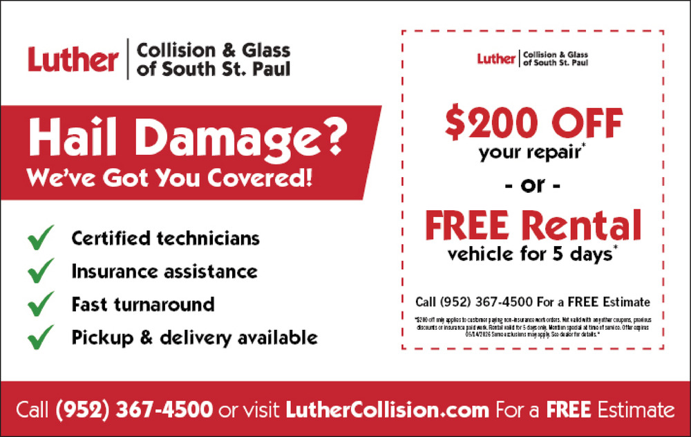 Ads for Luther Collision & Glass of South St. Paul in Southern Minn