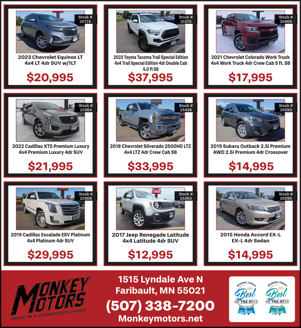 507-338-72001515 Lyndale Ave NFaribault, MN 55021(Monkey Motors)
