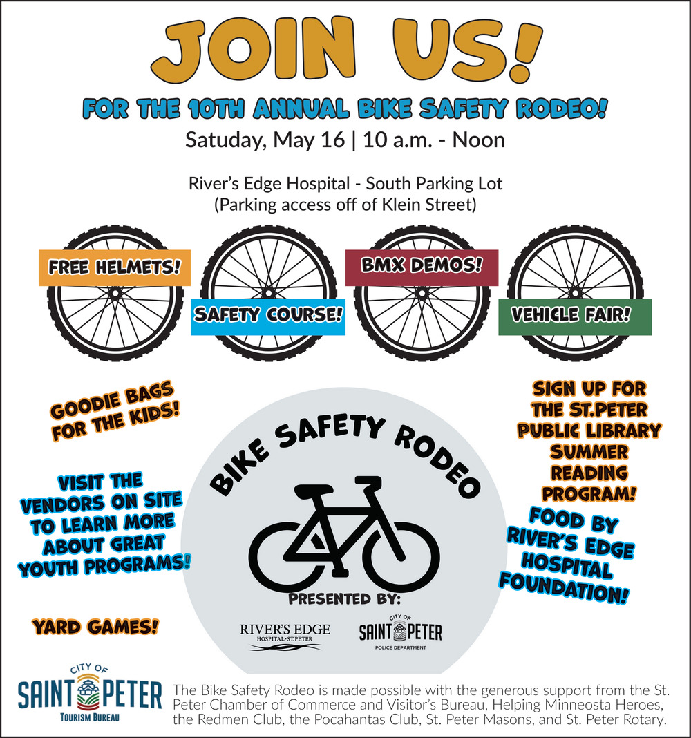 Apr 28, 2026. Bike Safety Rodeo (May 16, 2026) Events Ads from St Peter Herald